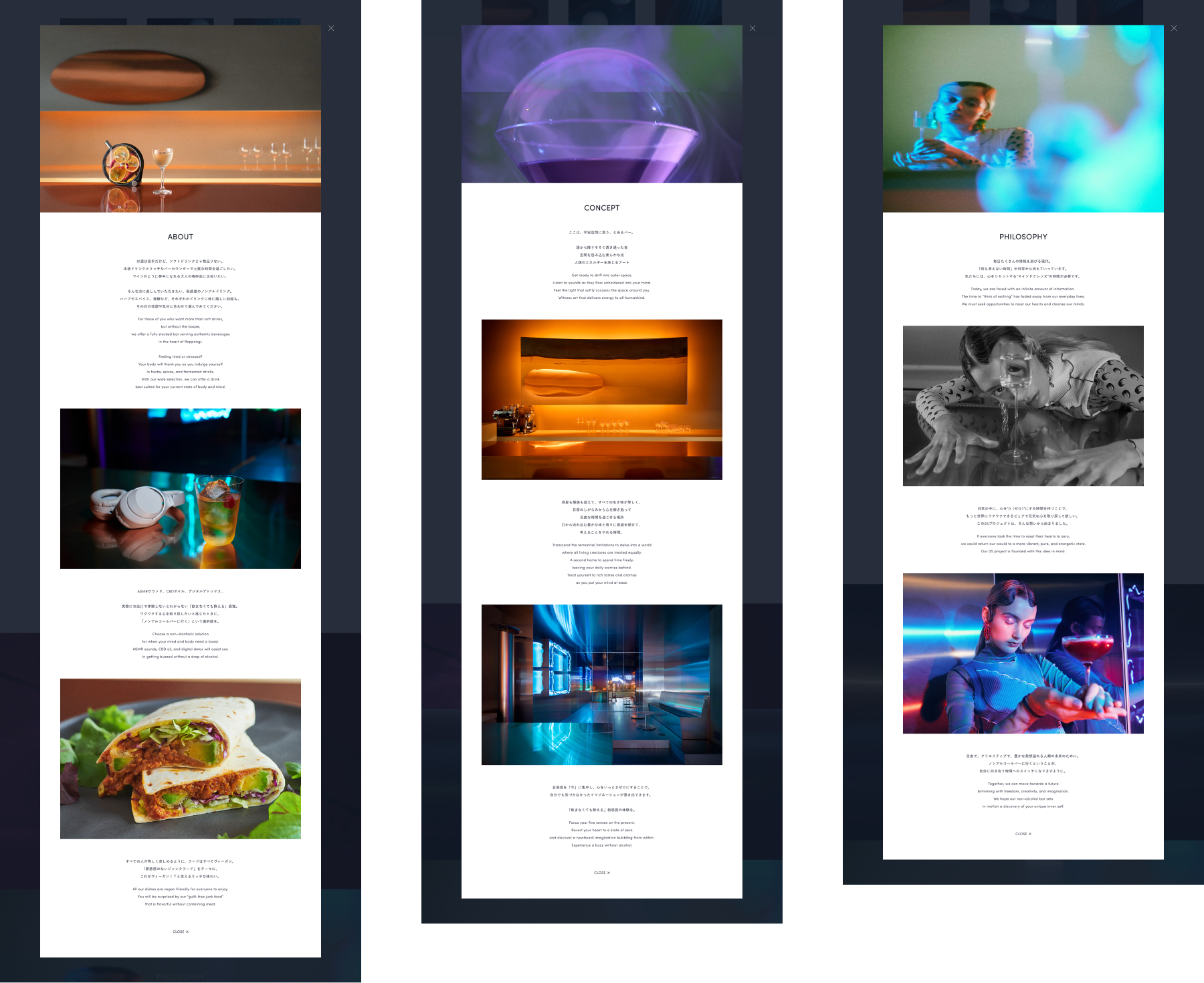 We have created the official website for 0% (Zero Percent), Japan's first bar that serves entirely non-alcoholic drinks.