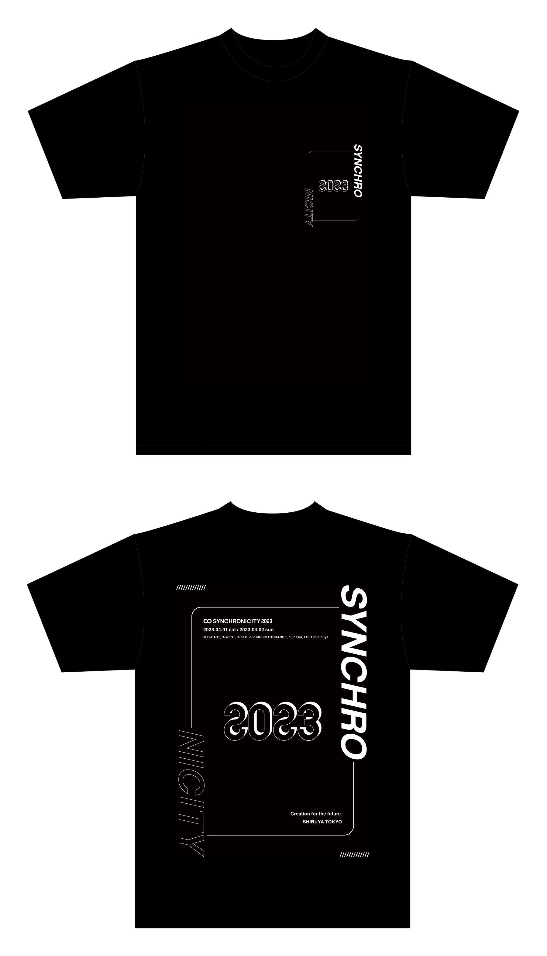 「未来へつなぐ出会いと感動 – CREATION FOR THE FUTURE – 」をテーマに開催する都市型フェスティバル、SYNCHRONICITY 2023のシルクスクリーンワークショップ用のオフィシャルTシャツデザインを制作させていただきました。