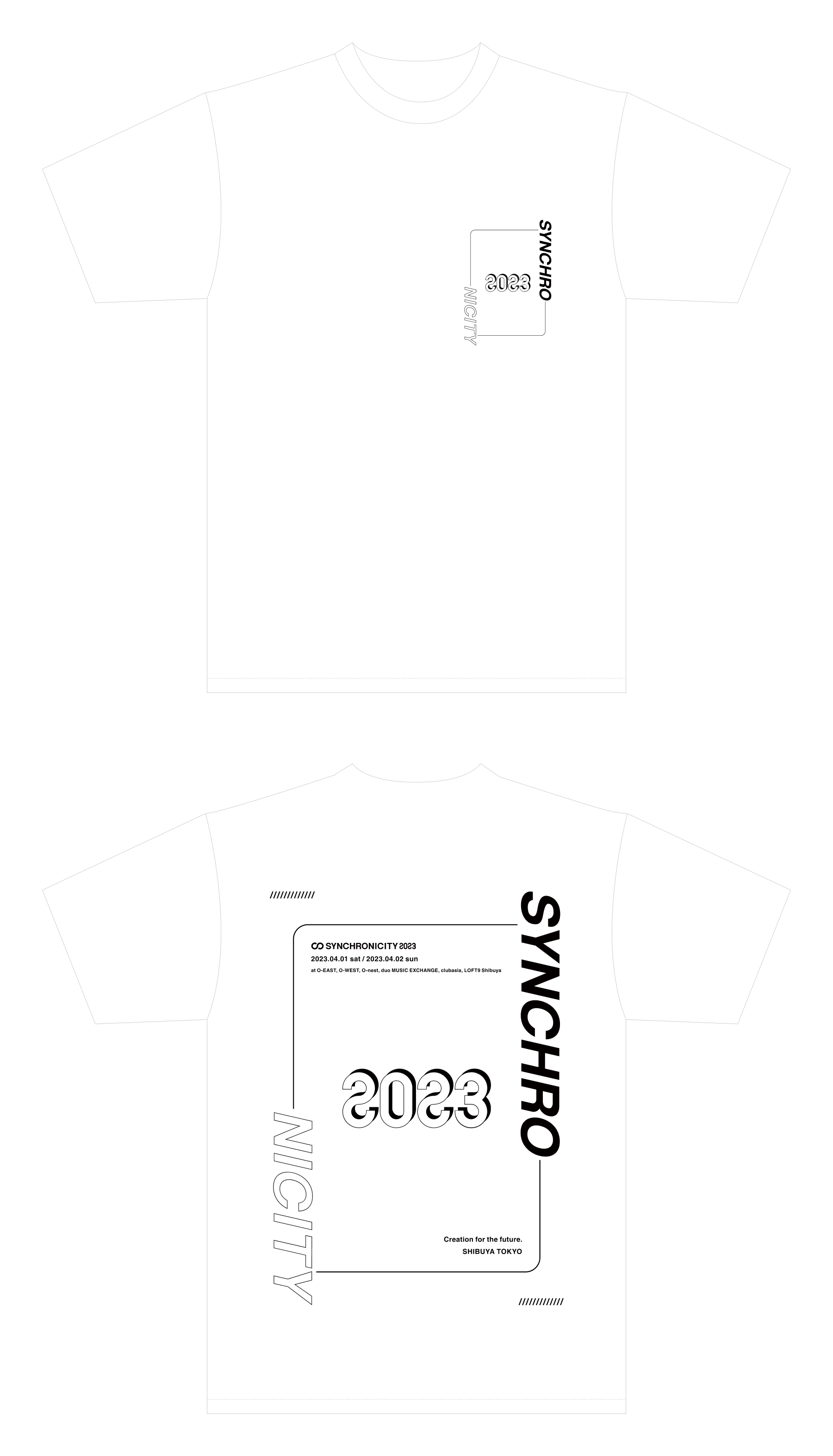 We have created the official T-shirt design for the silkscreen workshop of SYNCHRONICITY 2023, an urban festival held under the theme of "Encounters and Inspiration Connecting to the Future - CREATION FOR THE FUTURE".