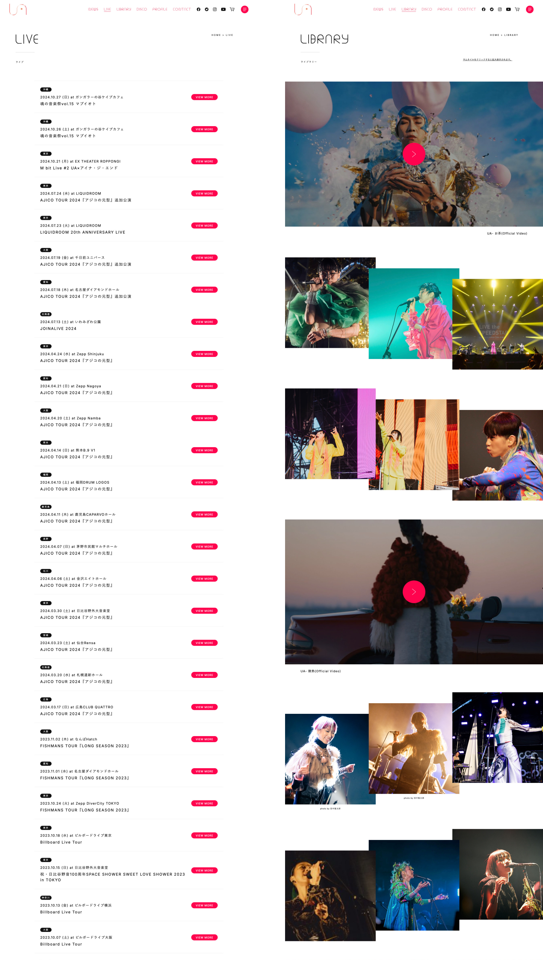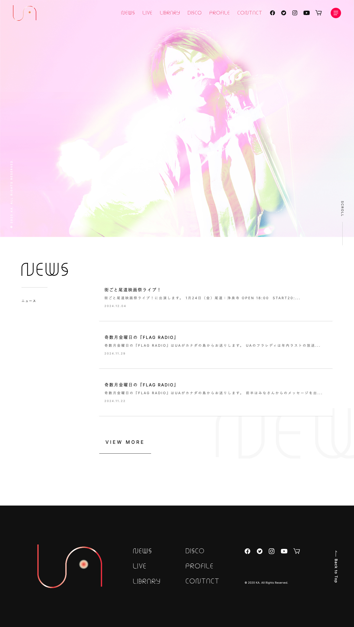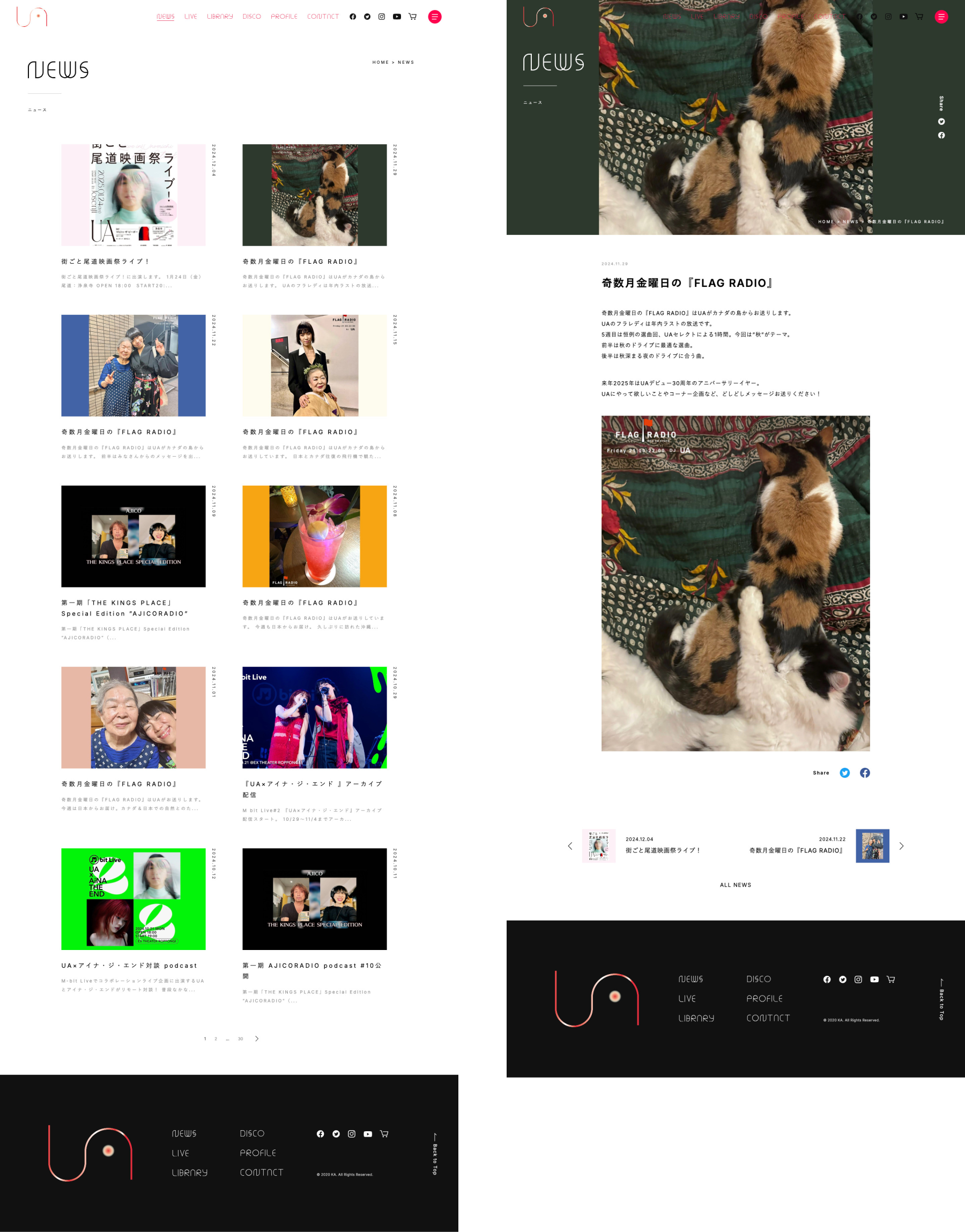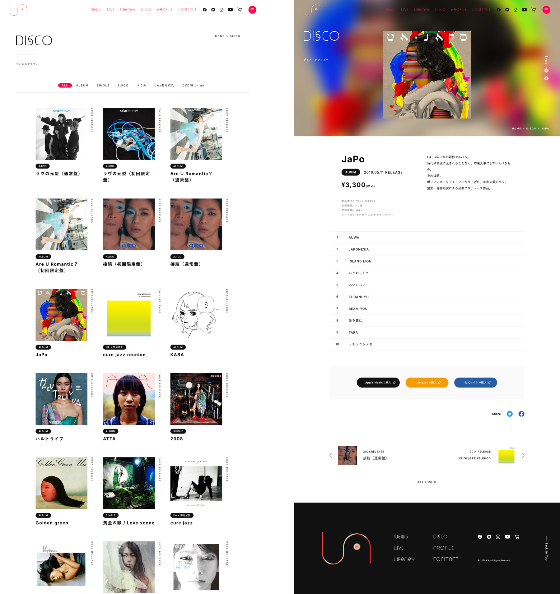 日本を代表する女性歌手、UA(ウーア)さまのオフィシャルサイトを制作させていただきました。